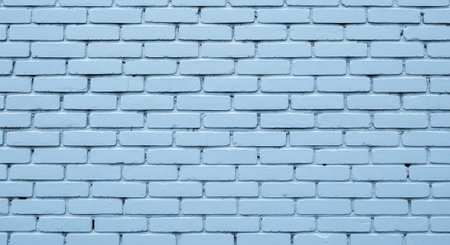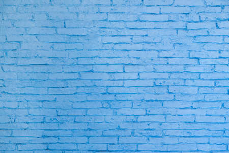 Brick wall painted with pale blue paint pastel calm tone texture background. Brickwork and stonework flooring interior rock old pattern clean concrete grid uneven bricks design stack backdrop.