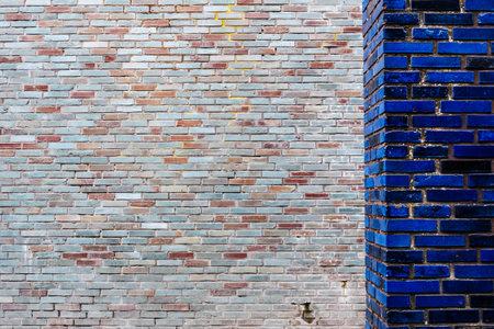 angled view of a blue brick wall
