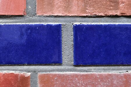 dark blue painted square part of brick wall