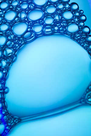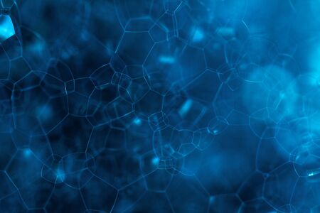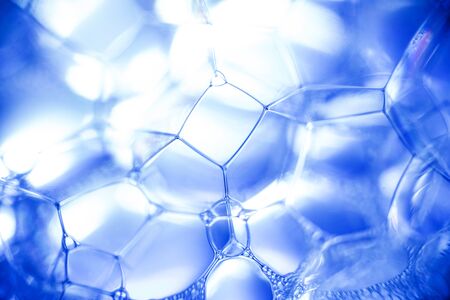 Abstract blue background of soap bubbles closeup