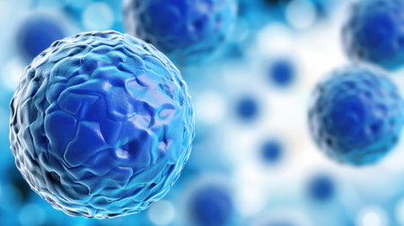Biological cells with blue background, 3d rendering. Computer digital drawing.