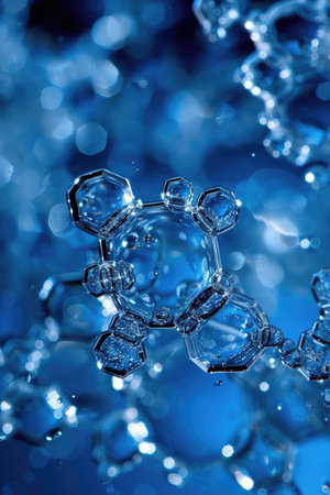 A close up of a blue and white cell structure, AI