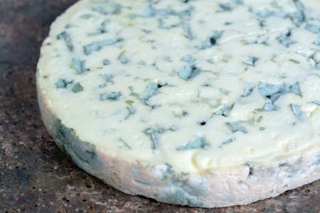 Roquefort, soft French cheese made from sheep milk on south of France, one of the world's best known blue cheeses with blue mold