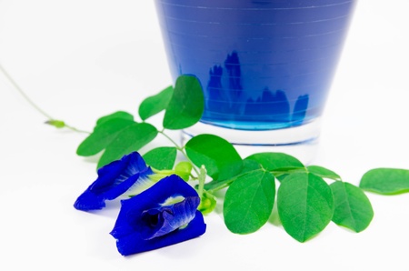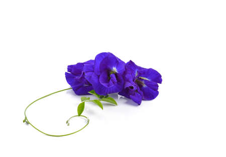 Butterfly pea or Blue pea flower (Clitoria Ternatea L.) and leaves isolated on white background.