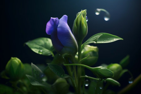Closeup of blue purple flower with green leaf under sunlight with copy space using as background natural plants landscape, ecology cover page concept.