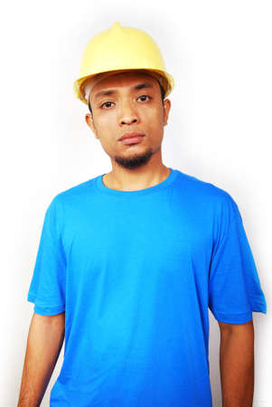 Construction worker with experience on a clear blue background.