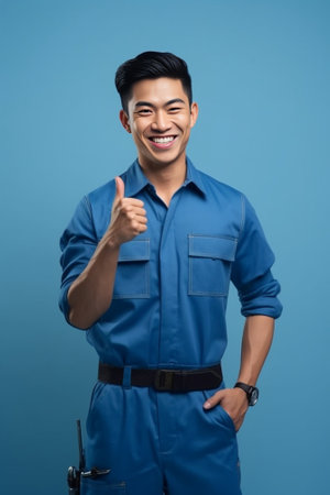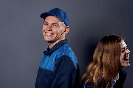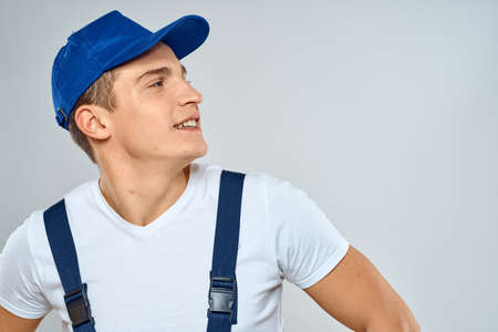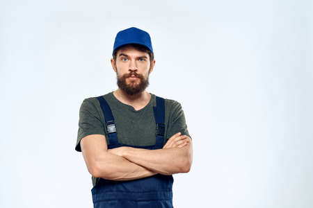 man in work uniform uniform professional work lifestyle delivery service blue background
