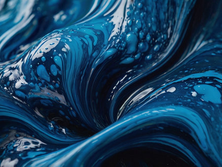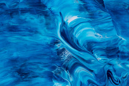 abstract background of blue acrylic paint in the form of waves and curls