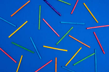 some multicolored sticks on a blue surface