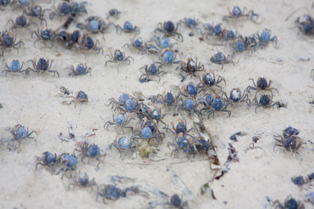 An interesting crab is waiting on sand to eat, high quality, high resolution