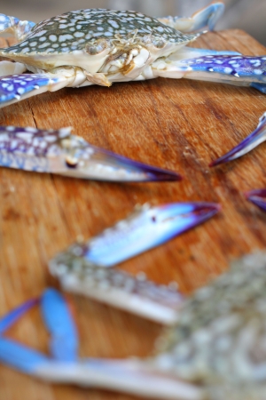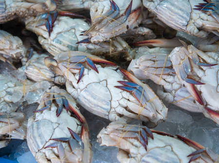 Sea blue crabs or fresh Thai crabs are sold at the seafood market.