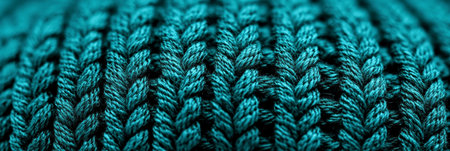 Macro texture of vibrant knitted wool featuring thick yarn and distinct stitches
