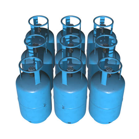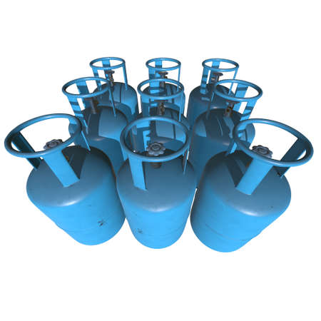 Gas cylinder lpg tank gas-bottle. Propane gas-cylinder balloon. Cylindrical container with liquefied compressed gases with high pressure and valves 3d render isolated on white background