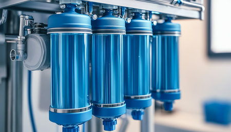 Water Purification System Close Up of Blue Filters Ensuring Clean, Safe Drinking Water