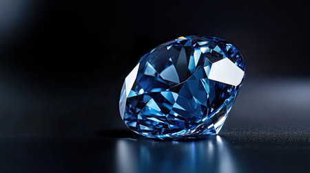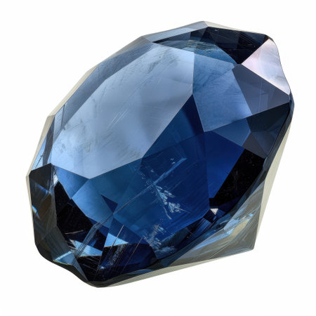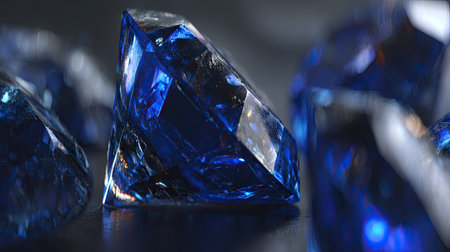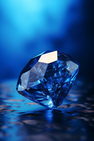 A captivating deep blue gemstone features intricate facets and stunning reflections, exemplifying natural elegance and visual appeal for luxury designs and decor.