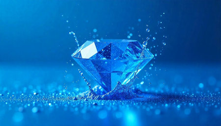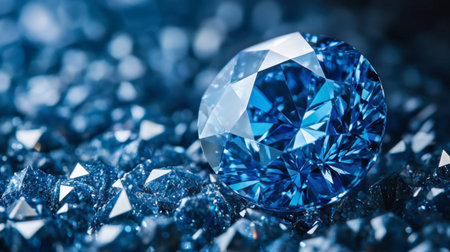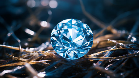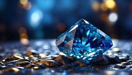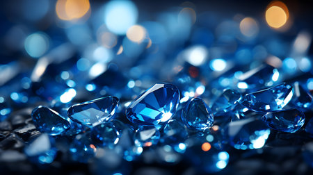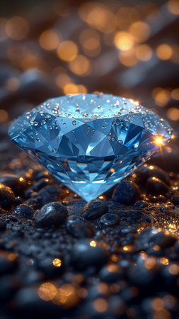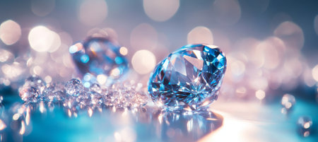Sparkling Blue Diamonds on a Reflective Surface, Captured with a Beautiful Bokeh Background