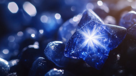 Stunning close-up of vibrant blue gems radiating light. The sparkling effect adds a touch of elegance and beauty, perfect for various design projects.