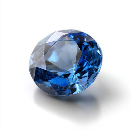 A close-up image of a stunning blue gemstone showcasing its brilliant cut and radiant facets. The gemstone exhibits a deep, rich blue hue and is set against a stark white background, highlighting its clarity and sparkle. The intricate facets reflect light, creating a mesmerizing display of brilliance and fire.
