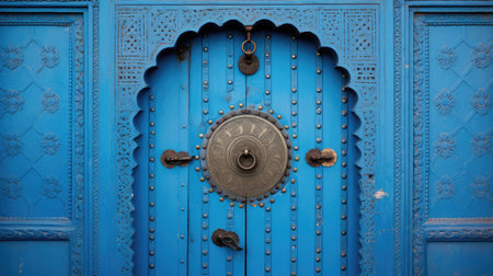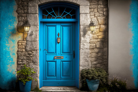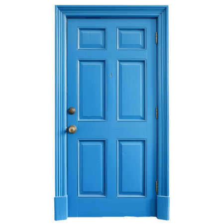 A captivating blue door that adds charm and vibrancy to any residential space. The intricate details highlight the craftsmanship, inviting warmth and elegance.