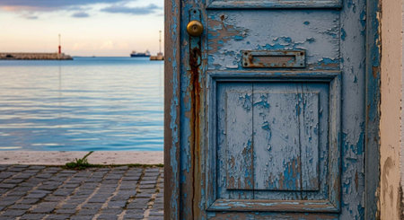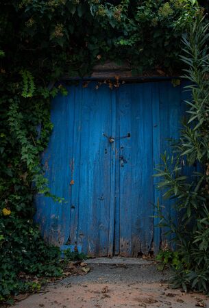 The Intriguing Mystery Behind the Closed Blue Wooden Door --ar 3:2