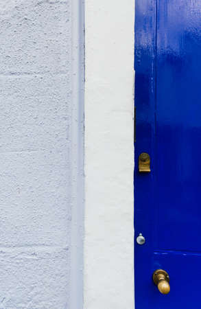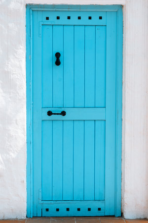 Blue door, traditional house detail in Greek island, Greece. Empty space