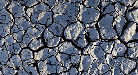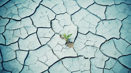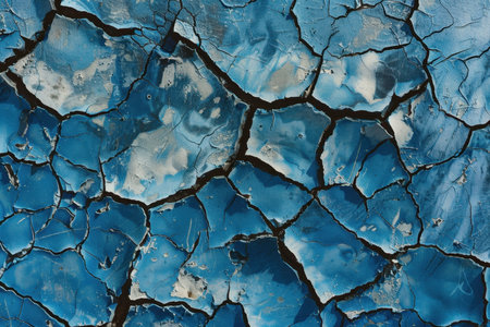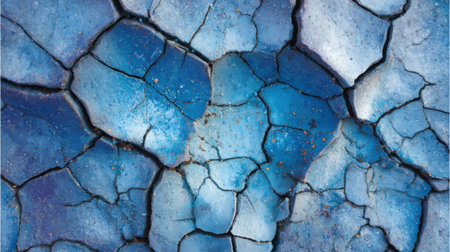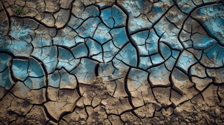 Cracked dry earth showing severe drought conditions in deep blue. Ai generated