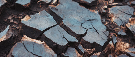 Close-up view of dry, cracked earth the impacts of drought and climate change. the textures showcase environmental stress, providing a powerful visual for discussions on sustainability and conservation. Generative AI