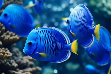 School of fish swimming in tropical reef, beauty in nature generated by artificial intelligence