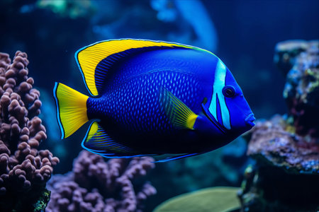 Explore the beauty of underwater life with this stunning image of a vibrant fish swimming gracefully in a coral reef habitat, showcasing the vivid colors of nature.