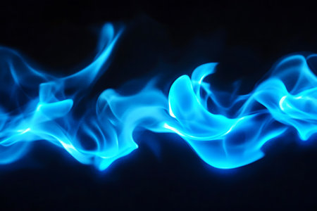 Vivid Blue Flames Dancing on Dark Background, Abstract Fire Background with Copy Space