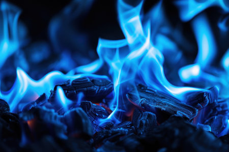 This stunning image features vivid, isolated blue flames burning brightly against a pitch-black backdrop, offering a visually striking representation of the intensity, mystery, and unique allure