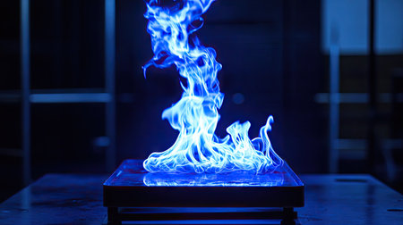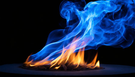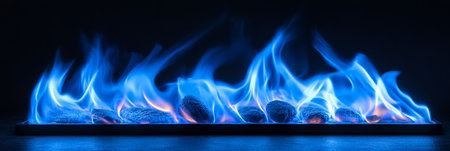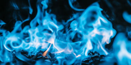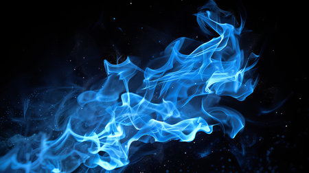Vibrant Blue Flames Dance in the Darkness, Creating a Mesmerizing Background with Copy Space