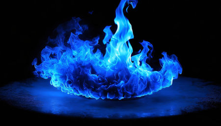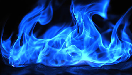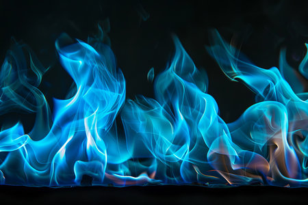 Vibrant Blue Flames Dancing with Intensity Over Dark Background, Providing Dramatic Copy Space