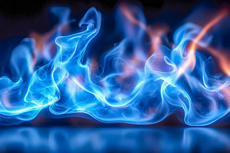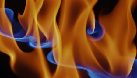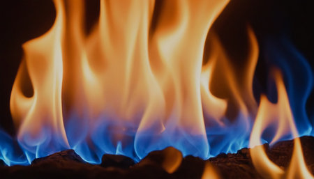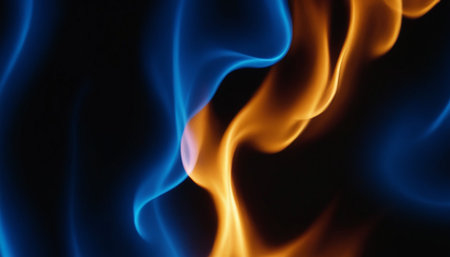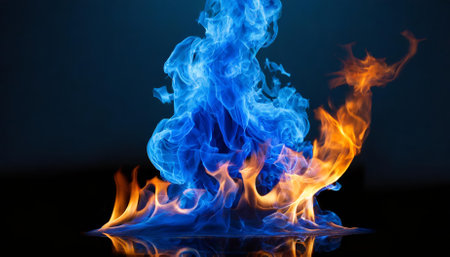 Vibrant Blue and Orange Flames Dancing on Dark Background, Perfect for Copy Space Designs