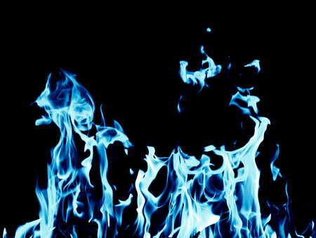 fire blue flames isolated on black background