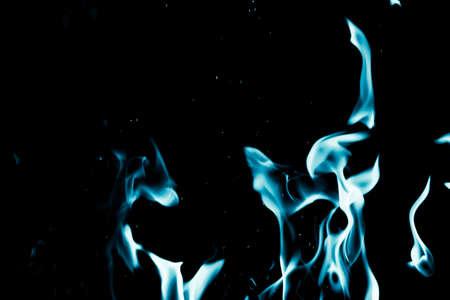 blue fire flames close up on black background. abstract background for design