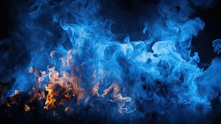 blue fire flames on black background close-up, abstract smoke background