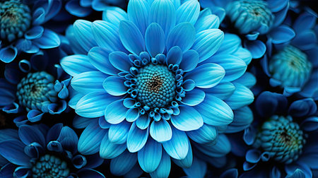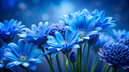 chrysanthemum buds captured in ultraviolet photography with focus stacking technique. the uhd image showcases soft blue hues and fluid lines, creating a romantic scene that's hard to believe. ai generated