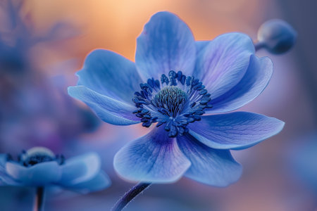 Elegant blue flower on a soft pastel background, symbolizing tranquility and beauty, ideal for nature and floral designs in various seasonal themes