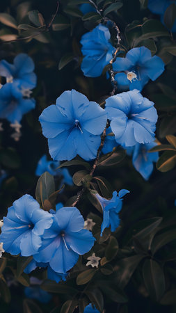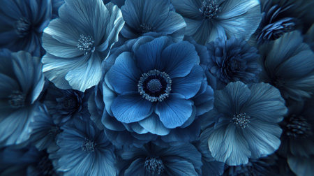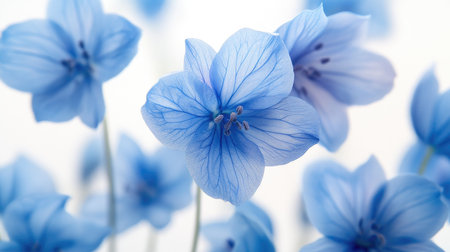 A stunning display of blue flowers showcasing delicate petals and intricate textures, perfect for adding a tranquil and elegant vibe to various projects or designs.