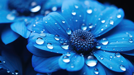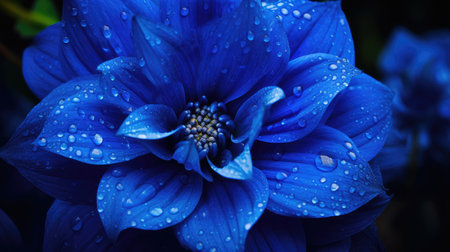 A beautiful bouquet of blue flowers with droplets of water on them. The flowers are a mix of purple and blue, creating a stunning contrast. The water droplets add a touch of freshness