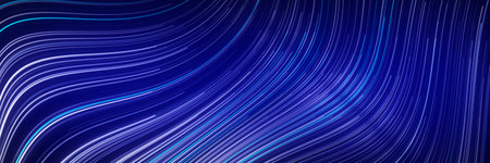 Abstract panoramic background of curved lines in blue colors. Place for text, copyspace.