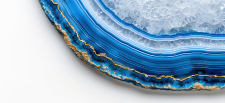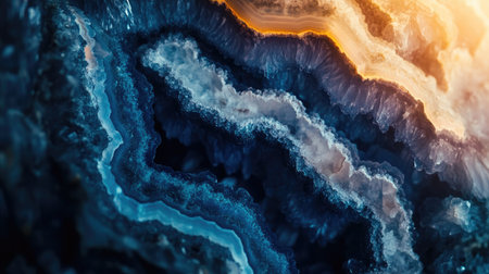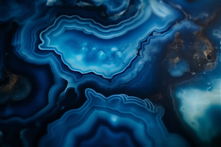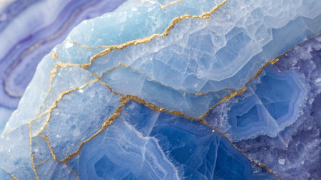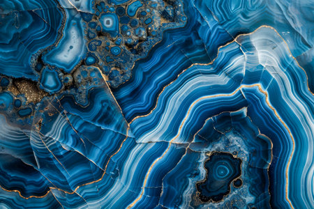 A captivating close-up image featuring blue agate stone with shimmering gold accents and crystal inclusions, showcasing intricate natural beauty and vibrant hues.