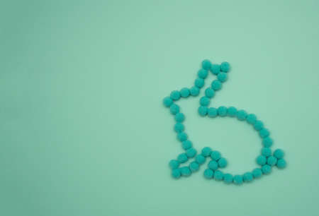 Rabbit contours made of green round cotton wool. Bunny on mint background.