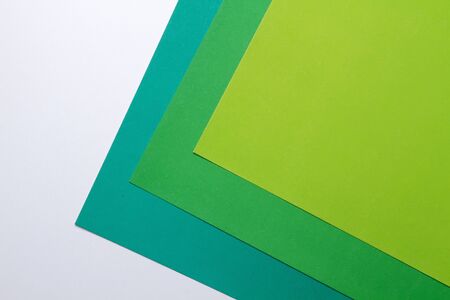 Close-up view of neatly arranged layers of colored paper in various shades of green, teal, and blue, ideal for creative projects and stylish backgrounds.