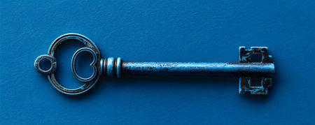 Enhanced Data Security with a Key on a Blue Background. Concept Data Security, Key, Blue Background, Enhanced Security