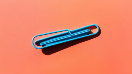 A large red paperclip rests on a calm blue background, showcasing a modern design ideal for office, creative, and minimalist themes.