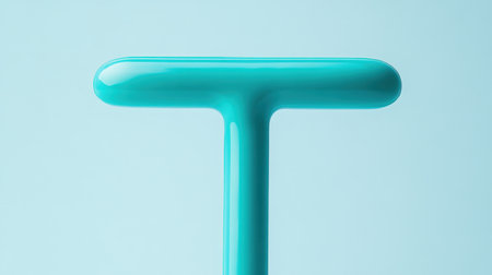 A sleek turquoise T-shaped object stands out against a soft blue backdrop, creating a captivating minimalistic scene perfect for modern design inspiration.