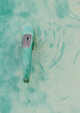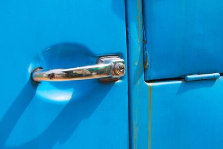 door handle of an old truck in blue
