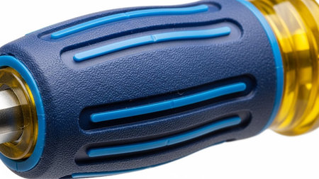A sleek and shiny metal tool resting on a modern blue and white background. This image captures the essence of craftsmanship and precision in mechanical repair and industrial applications.